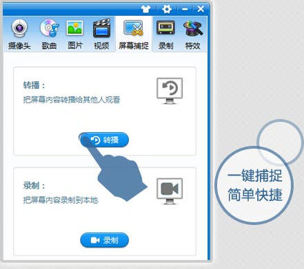超高效的实时屏幕捕捉功能。想要网络直播或在线捕捉视频画面?想把屏幕内容轻松录制到本地?只需轻触“转播”或“录制”键,便可轻松快捷地完成这一切。