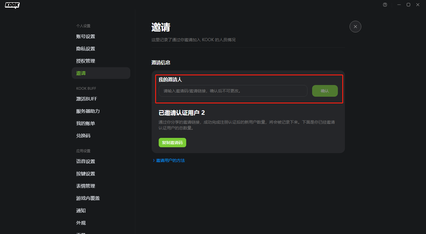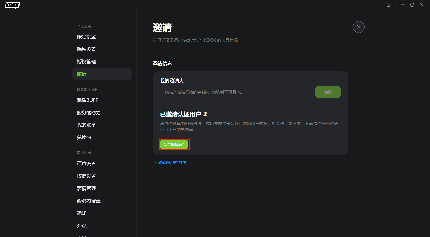 你可以创建一条服务器或者频道的邀请链接,通过此链接注册的用户会自动填写你的邀请码并注册。