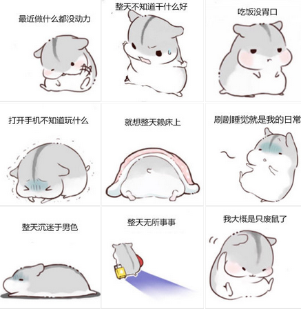 没动力、没胃口、不知道玩什么、赖床、整天沉迷于男色、无所事事、我大概是只废鼠了
