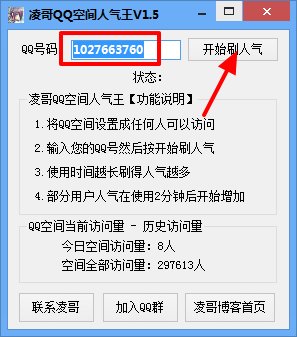 凌哥QQ2015是一款最新的QQ控件刷人气软件,这款软件支持完美免小号刷空间人气,软件后台内置大量QQ号,帮助你实时访问您的QQ空间,拥有真实的访问数据,同时软件免登陆,保障您账号的绝对安全!您只需要将空间设置为允许任何人访问即可,另外使用的时间越长,刷得的人气也越多,部分用户人气在两分钟后开始增加,非常好用。
