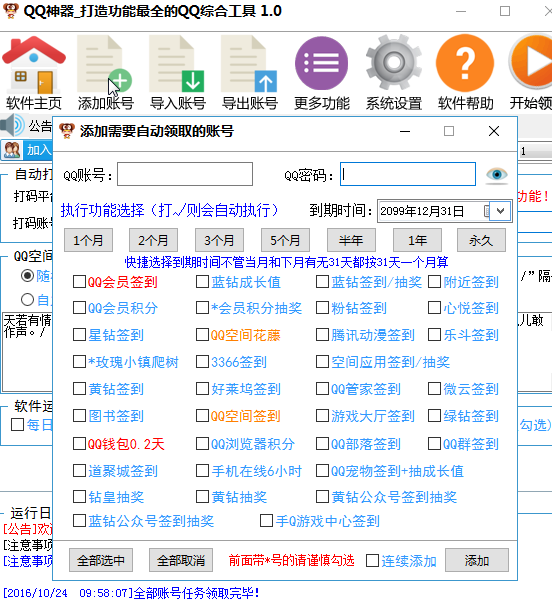 QQ神器2017电脑最新版一款由精易论坛网友研发出来的多功能的qq工具。这款不像其他的工具,而是拥有粉钻签到、TX动漫签到、蓝钻成长值领取、钻皇抽奖等强大功能,帮助你们快速完成qq的日常任务,领取更多的奖励。