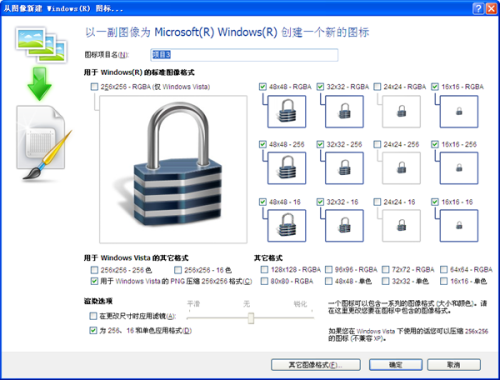 完成后,点击“确定”,即可生成选取的多种格式的图标。