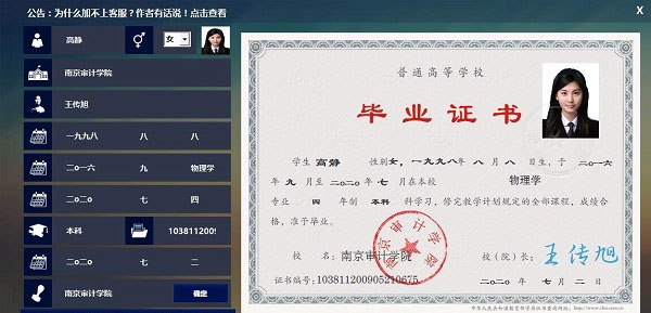 文凭生成器是一款非常好用的毕业证生成器的软件,只需要输入证书内容、姓名、单位、印章即可,支持各种字体,即可一键生成高仿的毕业证书,可以让你生成一整非常像高中或者是大学的毕业证,感兴趣的玩家欢迎下载使用!