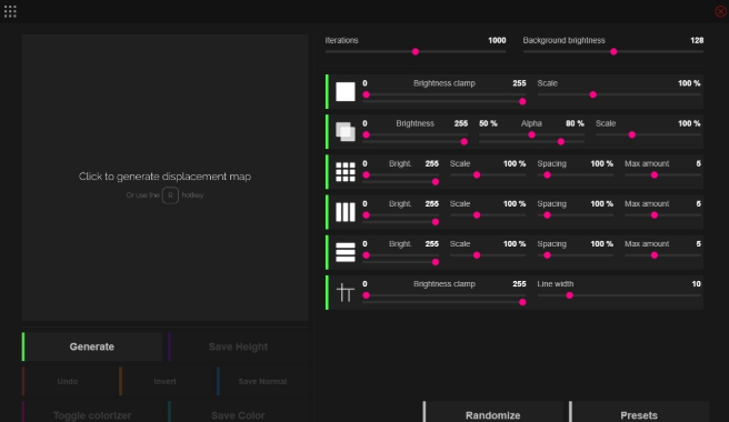 背景亮度:无论您要做什么,都可以控制地图的背景颜色以获得不同的结果。在置换中,将此设置为将使所有内容挤出。 255则相反。默认为128