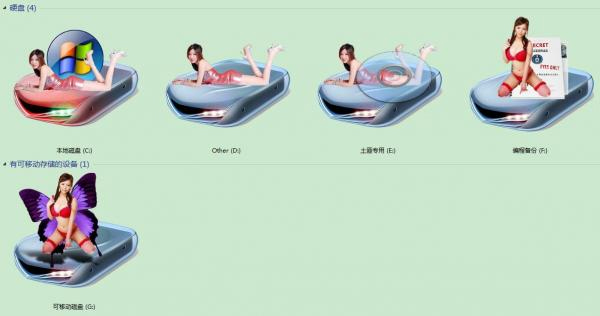 硬盘图标美化程序提供了九种美化方案选择,只需一键就可以将硬盘图标编程美女,喜欢个性的、想与众不同、那么硬盘图标也不例外,都要尽显自我的特别。软件易用,操作简便,并且支持恢复系统默认图标,请放心使用。