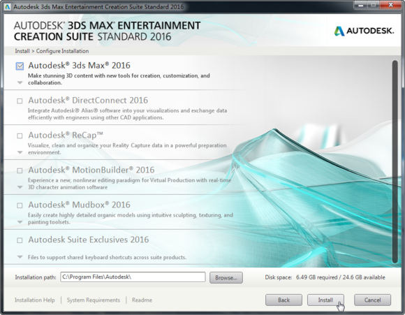 这个套装有好多软件,不过现在我就只想装max,所以只勾选max