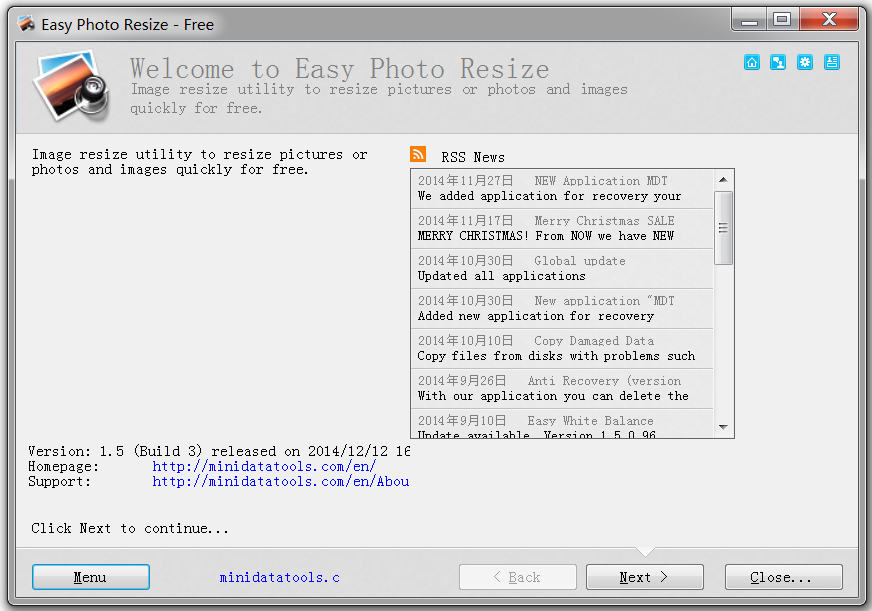 众所周知,高质量的图像具有较大的文件大小。方便打印或进行详细的查看。通常您不需要这么大的图像尺寸,对应于屏幕分辨率的尺寸就足够了。此外,大尺寸的图像也不方便上传到网络。我们特别为您设计了这个免费的应用程序,它将允许您一次性的快速调整所有图像的大小,即使是只有浅层计算机知识的人也很容易使用。该程序设计为循序渐进的向导型用户界面,在使用中直观易懂。只需三个步骤即可轻松地调整所有的图像大小。该程序的另一个优点是它的图像处理速度非常快。您可以设置一定的图像大小或相对于原始图像的百分比。