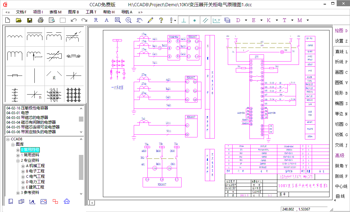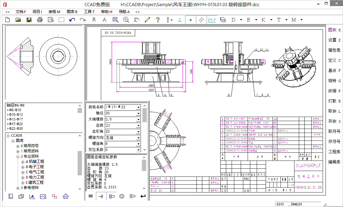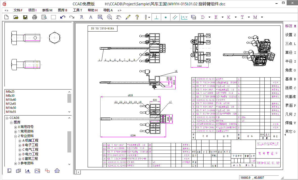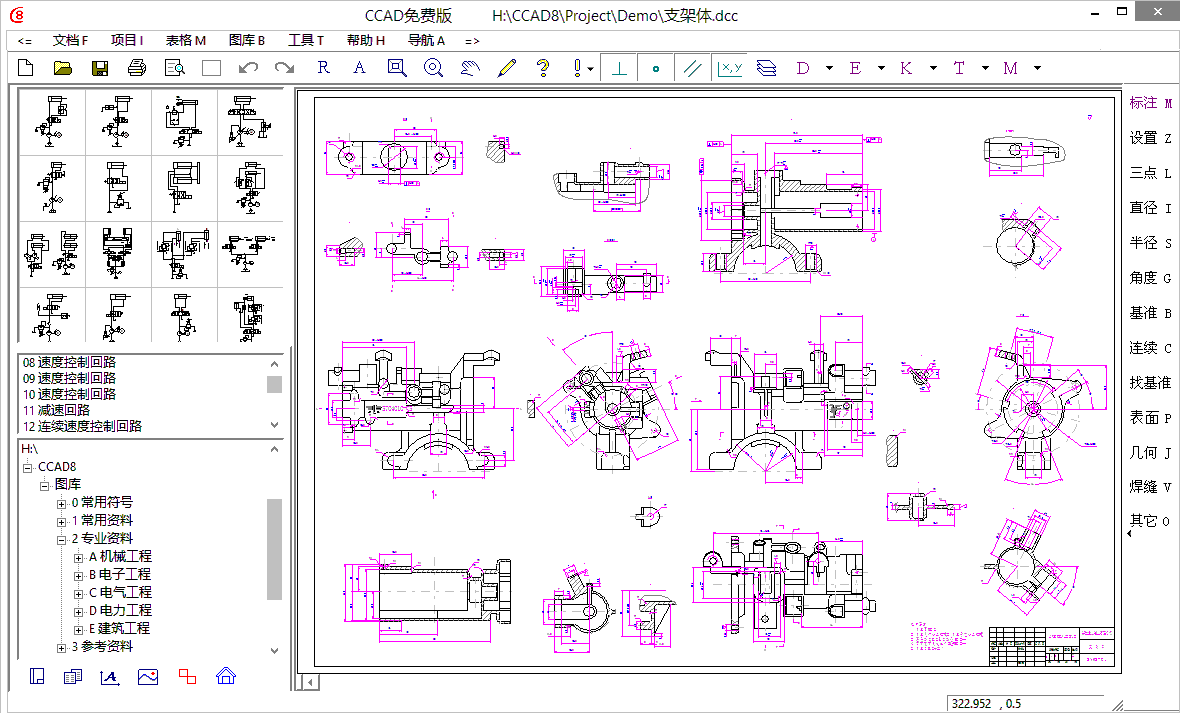 CCAD是一款真正完全免费的中文CAD软件。本软件全面兼容AutoCAD2015-2000 dwg/dxf文件数据,支持Windows所有系列32/64位操作系统使用;画图超快、功能超强、图库丰富,是目前最专业的一款中文cad软件。