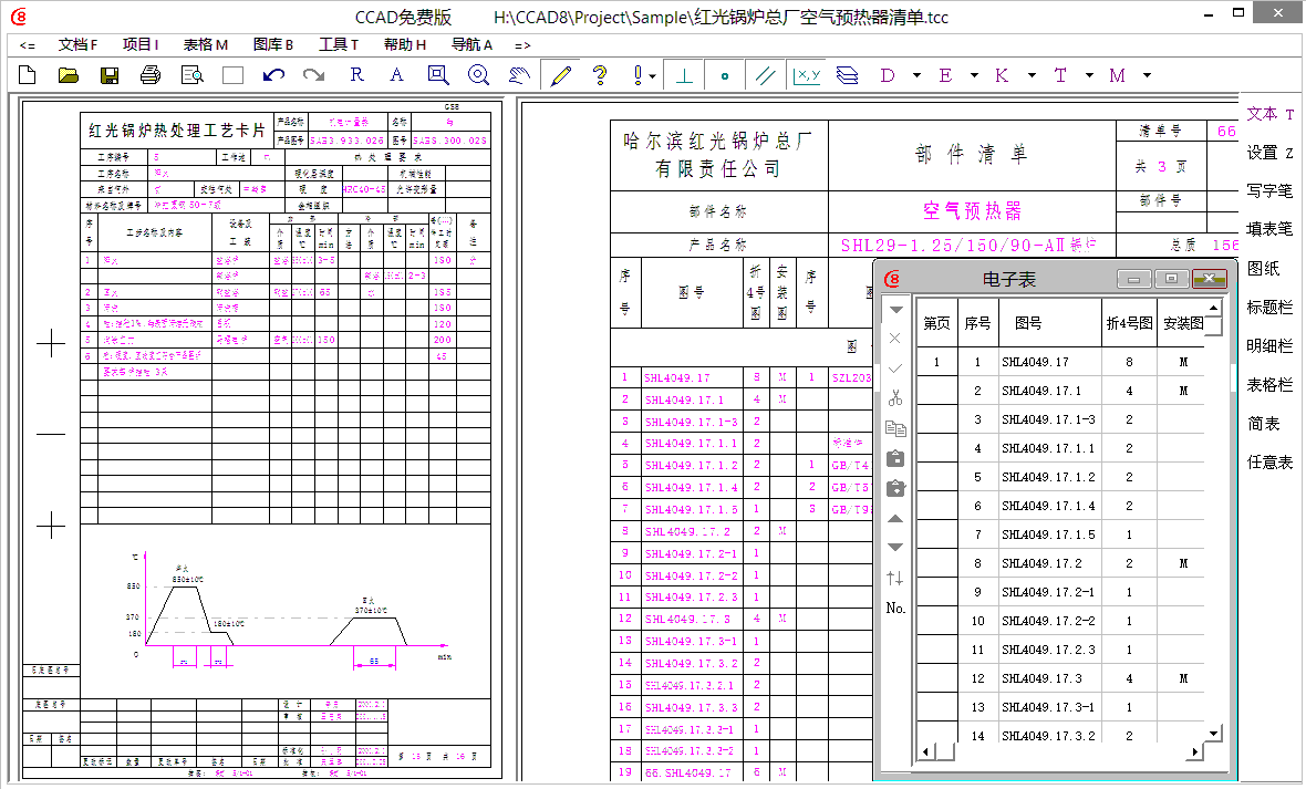 配备数百种符合标准的标题栏/明细栏/设计/工艺/生产文件表格,用户可自由扩充。