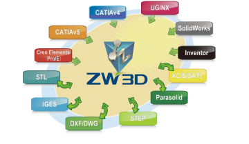 2、可以输出成CATIA的文件格式,也支持STEP, STL, IGES, Pasolid和DWG等格式的高质量输入、输出。