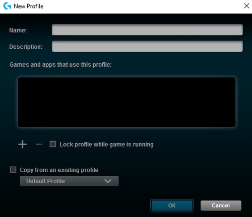 若想选择其他配置文件的背光、命令分配或指针设置作为起点,请标记该复选框以从现有配置文件复制。通过下拉菜单选择要复制其设置的配置文件。