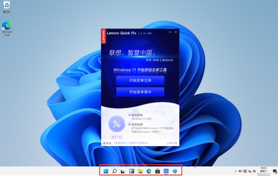 本工具用于将Windows 11下开始按钮设置为Windows 10样式。