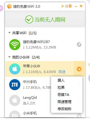 传统随身WiFi只能网络共享,猎豹极速WiFi让你想连就连,想上就上