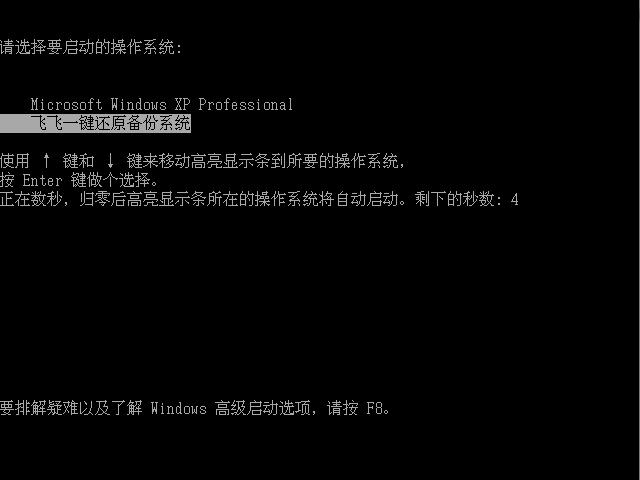 5、备份完成自动重启(飞飞一键重装备份系统后会自动删除启动菜单)到这里系统就完成备份了~