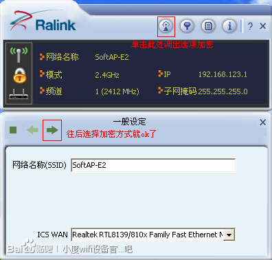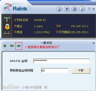 7.选择你的小度wifi已经加密上锁,这个时候雷凌驱动相当于一个客户端可以管理小度这块无线网卡,然后你懂的。