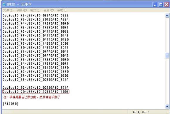 里面添加一行DeviceID_90=USBVID_2955&PID_1001