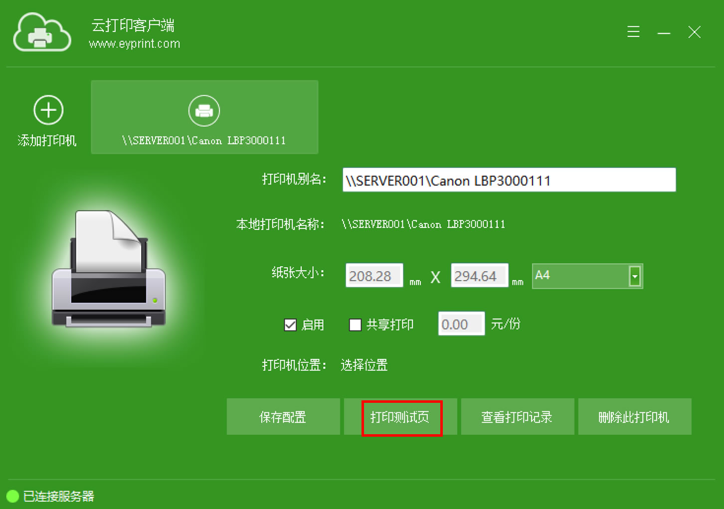 如果打印机能顺利打印测试页,便意味着打印机已经成功接入易云打印平台。