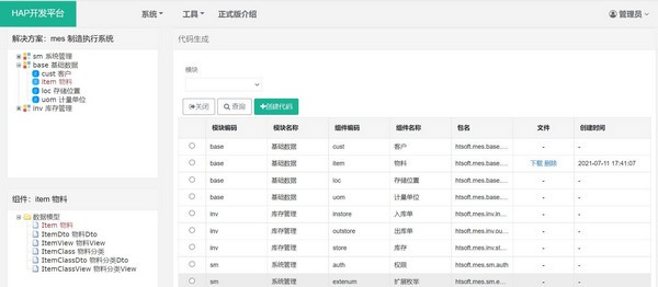 5、自动化代码生成,生成的组件代码包涵建库脚本、控制器、实体和DTO、DAO接口、服务接口及其实现