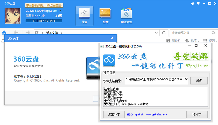 吾爱360云盘一键绿化补丁工具的功能特色: