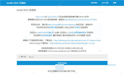 4、打开浏览器输入“http://idea.lanyus.com/”,点击“获取注册码”