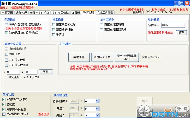 极光后台修改软件是一款采用八重加密技术,绝无后门的淘宝后台管理软件。它支持对已购买宝贝的数据、评价管理的数据以及支付宝明细的数据进行修改与隐藏,完全根据个人需求,所有数据尽在掌控之中。该软件在后台悄然运作,无声无息。在软件未关闭的情况下,任意刷新或远程访问,您所见的仅为您所修改的数据。