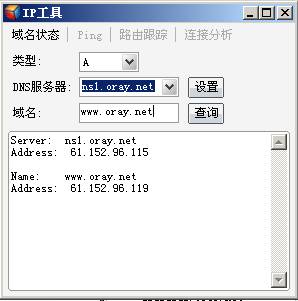 2) DNS服务器:ns1.oray.net(您亦可添加其他DNS进行查询)