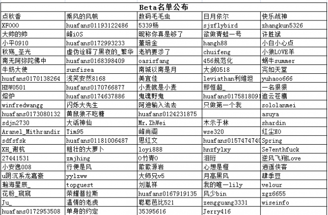 非BETA名单: