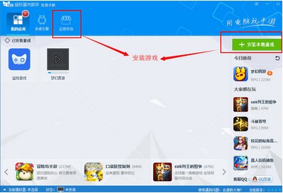 ②电脑先下载好游戏的安装包(怕找不到放桌面),点击右边绿色框安装本地应用,找到安装包打开。