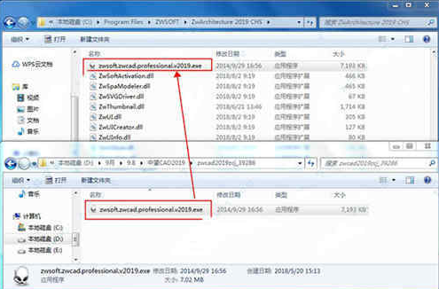 4.回到下载的安装包,将注册机zwcadzzj.exe复制粘贴到中望cad2020的安装目录当中(右击桌面图标点击属性就可以查看),默认路径为C:Program FilesZWSOFTZwArchitecture 2020 CHS