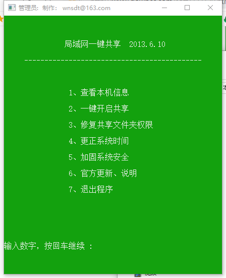 局域网一键共享(一键)绿色版具有一键开启共享、加固系统安全、修改系统时间等功能。可快速修复文件夹、打印机无法共享、网上邻居无法浏览或打开缓慢等问题。程序完全采用批处理编写,所有功能一键完成,简单高效。使用本程序后,必须重启计算机,否则设置可能无效。