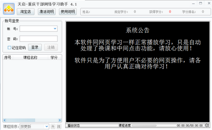 重庆干部网络学院助手是一款帮助重庆干部网络学院学生轻松在线学习的实用工具,软件拥有最高加速15倍的加速功能,拥有自动处理各种弹出窗口,自动验证识别码等超多实用功能。