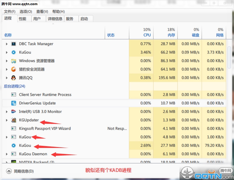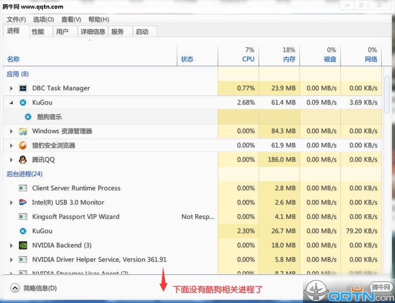 使用软件上全部精简后相比之前少了很多进程,也节省了不少内存: