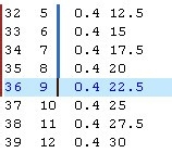 除了复制文本外,使用列模式还可以进行编辑。下图中的几列中的0.4没有对齐。我们选择0.4前面的空格。