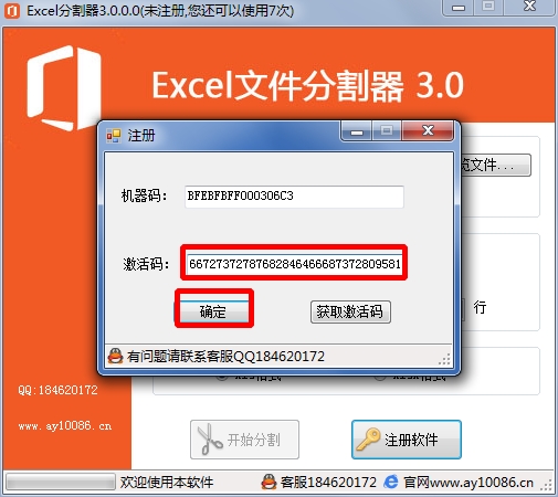 Excel文件分割器破解说明