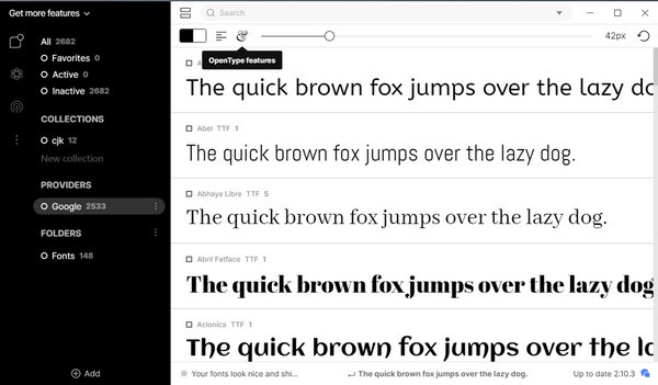 添加OpenType,现在可以设置任何OpenType特征的文本预览。