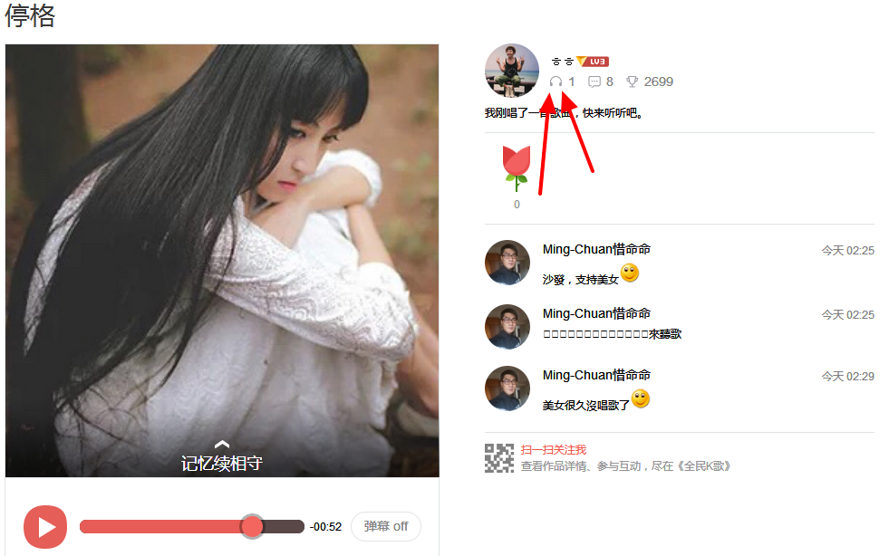 试听量主要就是人气的象征,你的试听越高,代表你唱的这首歌越火爆,越容易被大众接受,反之同理。
