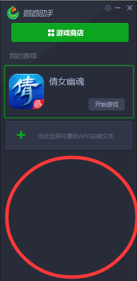 1、如果游戏大厅没有你想要玩的游戏。需要在本地电脑安装APK文件,请点击游戏商店下方的加号按钮