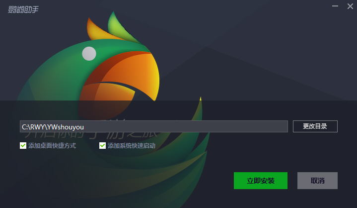 极速安装会自动选择安装在当前电脑剩余空间最大盘符的根目录下,并默认勾选桌面快捷方式和系统快速启动