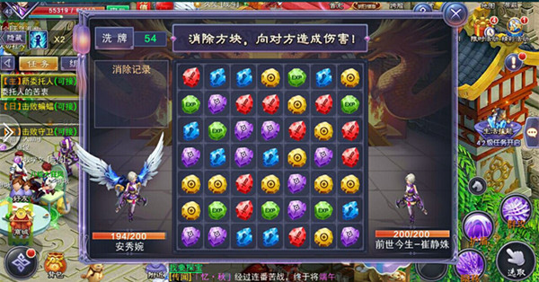 相信大家一定都玩过消消乐的游戏,在我们寻找前世之旅的手游中,玩法也有点相似。在游戏开始的时候,玩家双方都有200血量,消除五种(红、蓝、紫、黄、绿)会产生不同的效果。血量先降到o的玩家就是失败了。而一次消除4个或者四个以上的可以获得特殊符石,用来消除整行、消除整列、消除九宫、消除同色。
