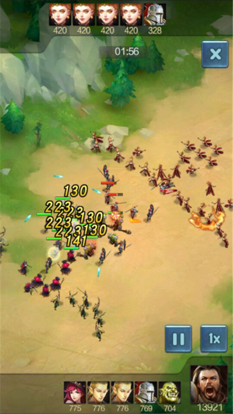 《王者远征》在兵种的设计和组合应用上,也做到了搭配丰富,策略多样。游戏中包含了四大兵种、48个衍生士兵外,兵种之间的组合也是千变万化、相生相克,让玩家体验到游戏真正的技巧和乐趣。