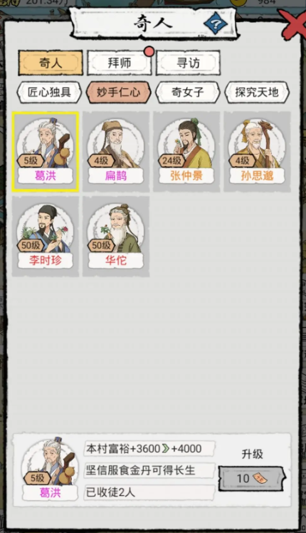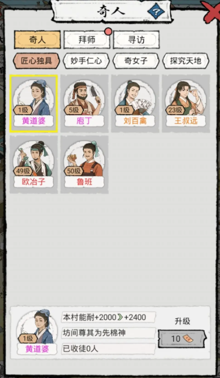 三:奇人:由于金票不足,我优先将红色人物点满,毕竟这能增加财富和能力。
