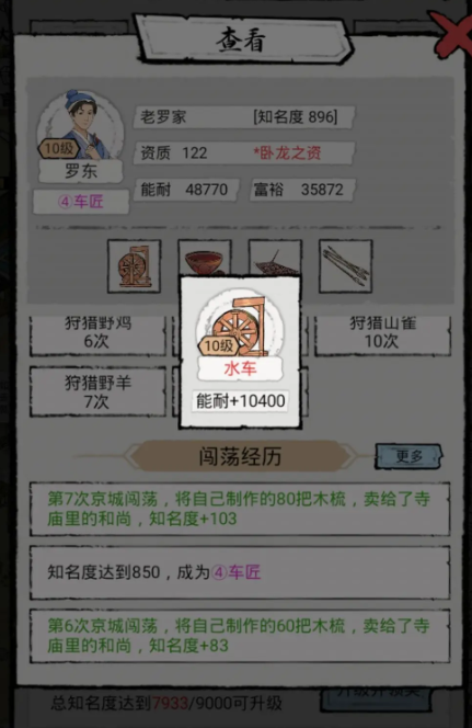 3、建议培养高知名度人物,他们是拔尖的人物,是否能够出头还需依赖于他们。待到你的第一梯队都升满级后,便不再缺少铜钱,只需耐心等待与培养(能看广告的可同时提升培养人数)。