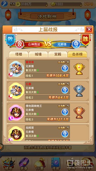 3、宫殿争霸战:宫殿争霸战阶段所有参战玩家将会持续厮杀至最后一人,将对手阵营全体成员击杀并保持10分钟即可获得最终的宫殿争霸战胜利,获胜方军团将成为荆州占领军团。