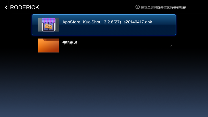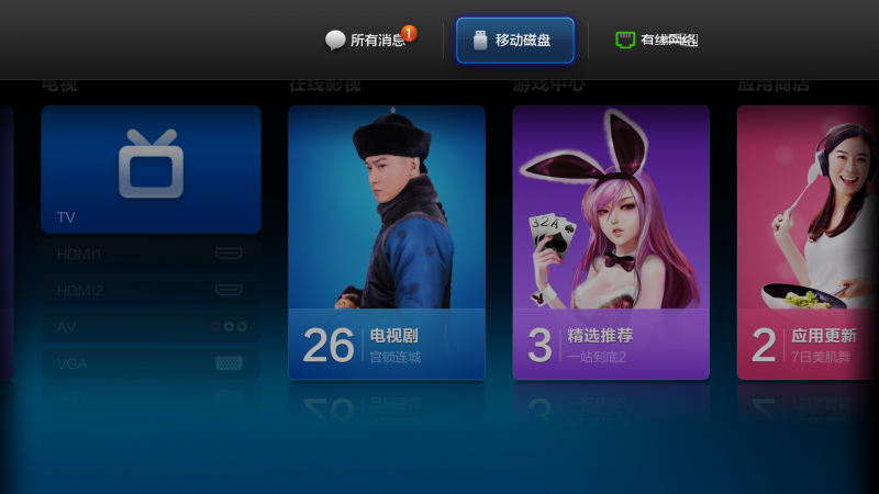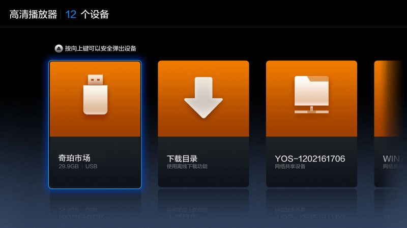 step2: 将下载好的奇珀市场U盘插入小米电视,系统将自动识别U盘信息,亦可通过右上角的移动硬盘打开~