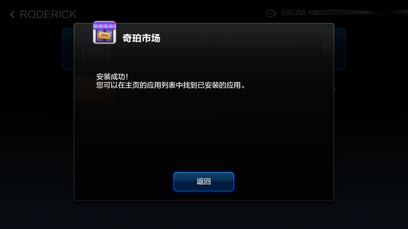 安装成功后,返回小米电视主界面,您将找到“奇珀市场”的图标。
