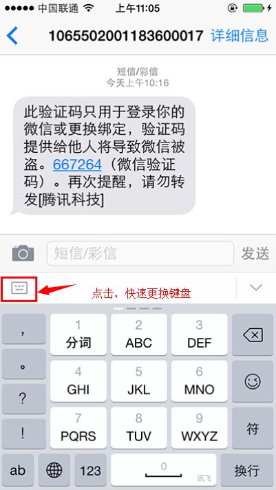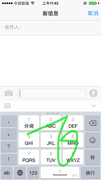 3. 由于微信、QQ尚未适配iOS8,调用输入法无法顶起聊天框(有个人解决方法就是按地球切换自带输入法,点击输入框,之后再切换为讯飞输入法)
