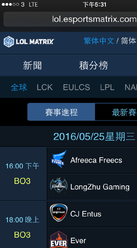 LOL 魔方资讯覆盖了英雄联盟电竞广泛的地区,包括 LCK、北美和欧洲 LCS、LPL 及 LMS,还有更多功能将在未来陆续推出