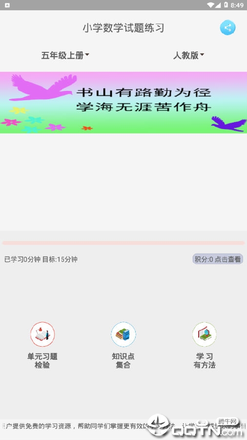 小学数学是一款轻松,好用,风格简洁的学习软件,主要适合人教版教材的小学生使用。