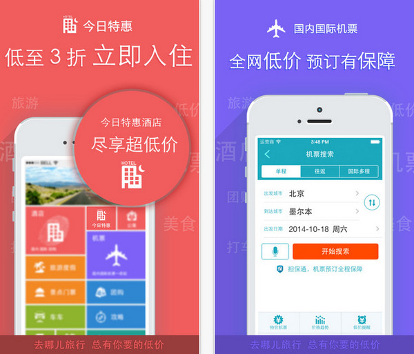 各大航空公司旗舰店和海量优质供应商逐一即时报价全国3000条航班机票信息 , 随时随地预订低至一折机票。